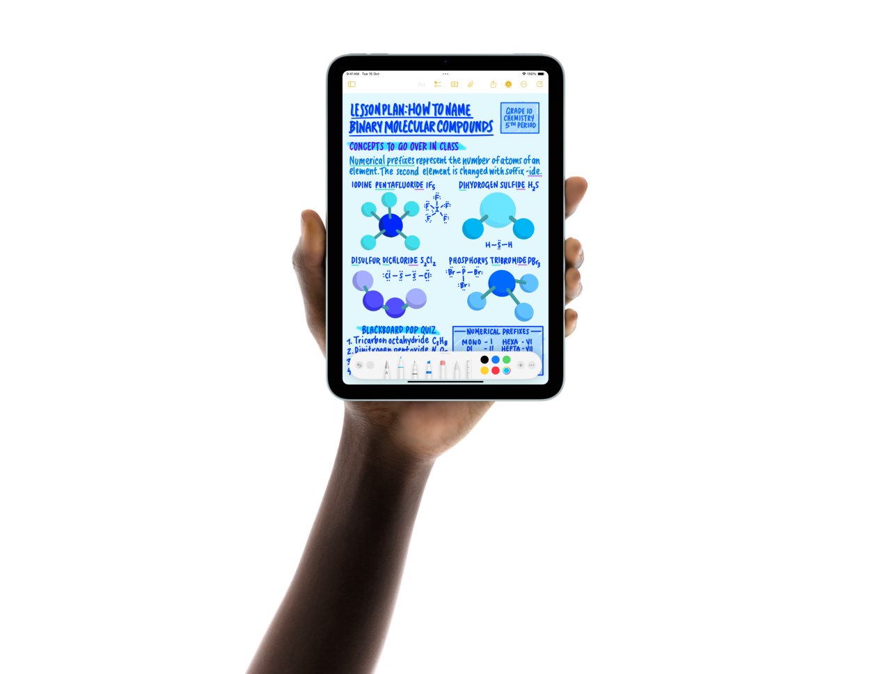 Apple Pencil Pro can sense when you squeeze it and brings up a palette, so you can quickly switch tools, line weights, and colors.