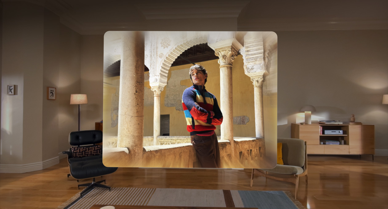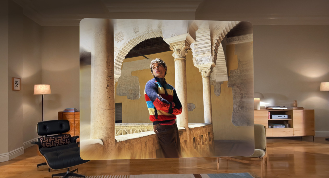Spatial scenes transform images and viewing experiences giving them lifelike depth. You can view them in Photos, Safari, and Spatial Gallery — and third-party developers can incorporate them, too.
