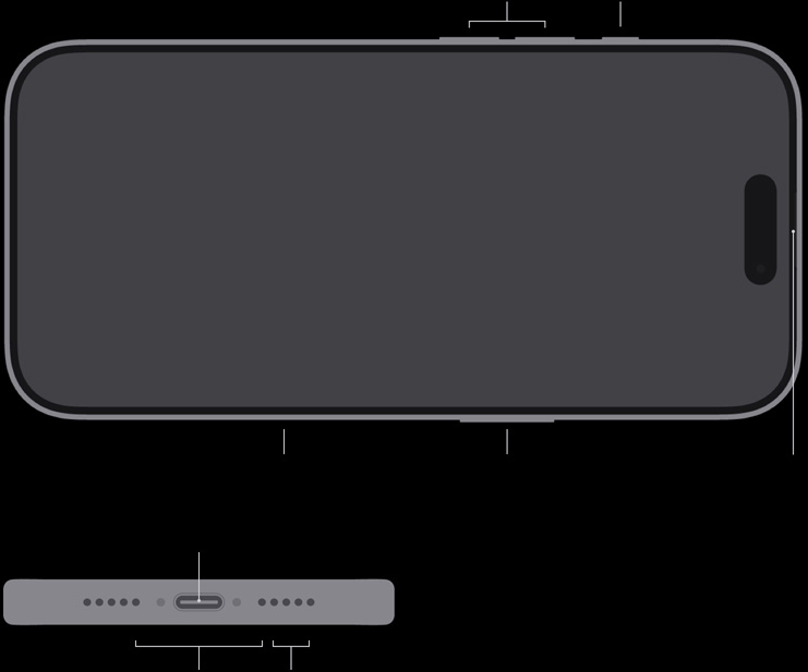 يتسم تصميم شاشة iPhone 17 Pro بزوايا مدورة تكمّلها روعة المنحنيات، في إطار مستطيل الشكل. وعندما تقاس الشاشة كمستطيل بالشكل القياسي، يكون مقاسها قطرياً 6.27 إنش (المساحة الفعلية القابلة للمشاهدة أقل).