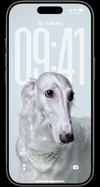 As horas se adaptam dinamicamente à imagem de fundo e às notificações, mantendo a pessoa ou objeto em destaque. Quando você move o iPhone, o novo efeito 3D muda a perspectiva da imagem16.