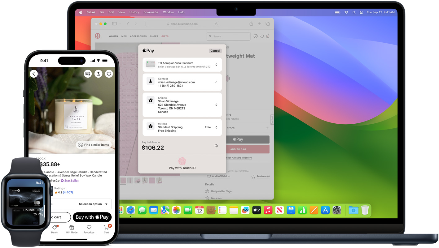 In apps and online. Use Apple Pay to seamlessly make purchases in Safari and other browsers — on iPhone, iPad, Mac and other computers — without the lengthy checkout forms. On an Apple device, click or tap the Apple Pay button and pay with a touch or glance. On a non-Apple device, scan the Apple Pay code with your iPhone camera and use your iPhone to complete your purchase.4 You can even use Apple Pay to subscribe to services like Apple Music, Apple News+ and Apple TV+, buy apps and games on the App Store, and upgrade your iCloud storage.