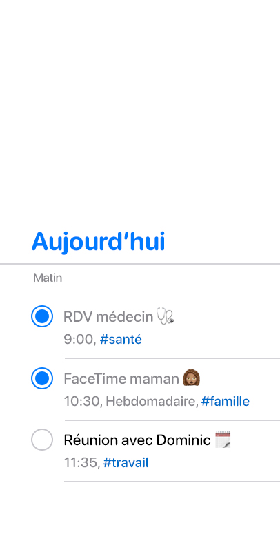 N’oubliez plus rien, de vos tâches quotidiennes à vos rendez-vous. Créez des rappels vite fait avec Siri, et personnalisez vos listes et alertes grâce à de puissants outils.
