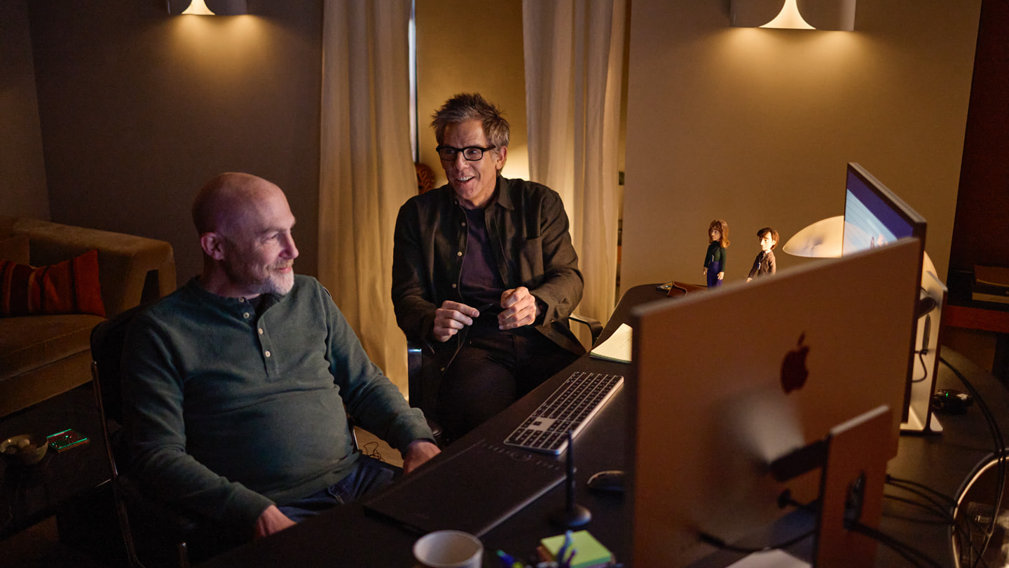 Supervising editor Geoffrey Richman (left) works closely with executive producer and director Ben Stiller (right) on the Severance season two finale, brought to life with the power of Mac.