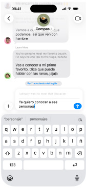 Activa Traducción en Vivo para traducir textos automáticamente en Mensajes1, leer subtítulos generados en vivo mientras usas FaceTime y escuchar traducciones habladas durante una llamada en la app Teléfono.2