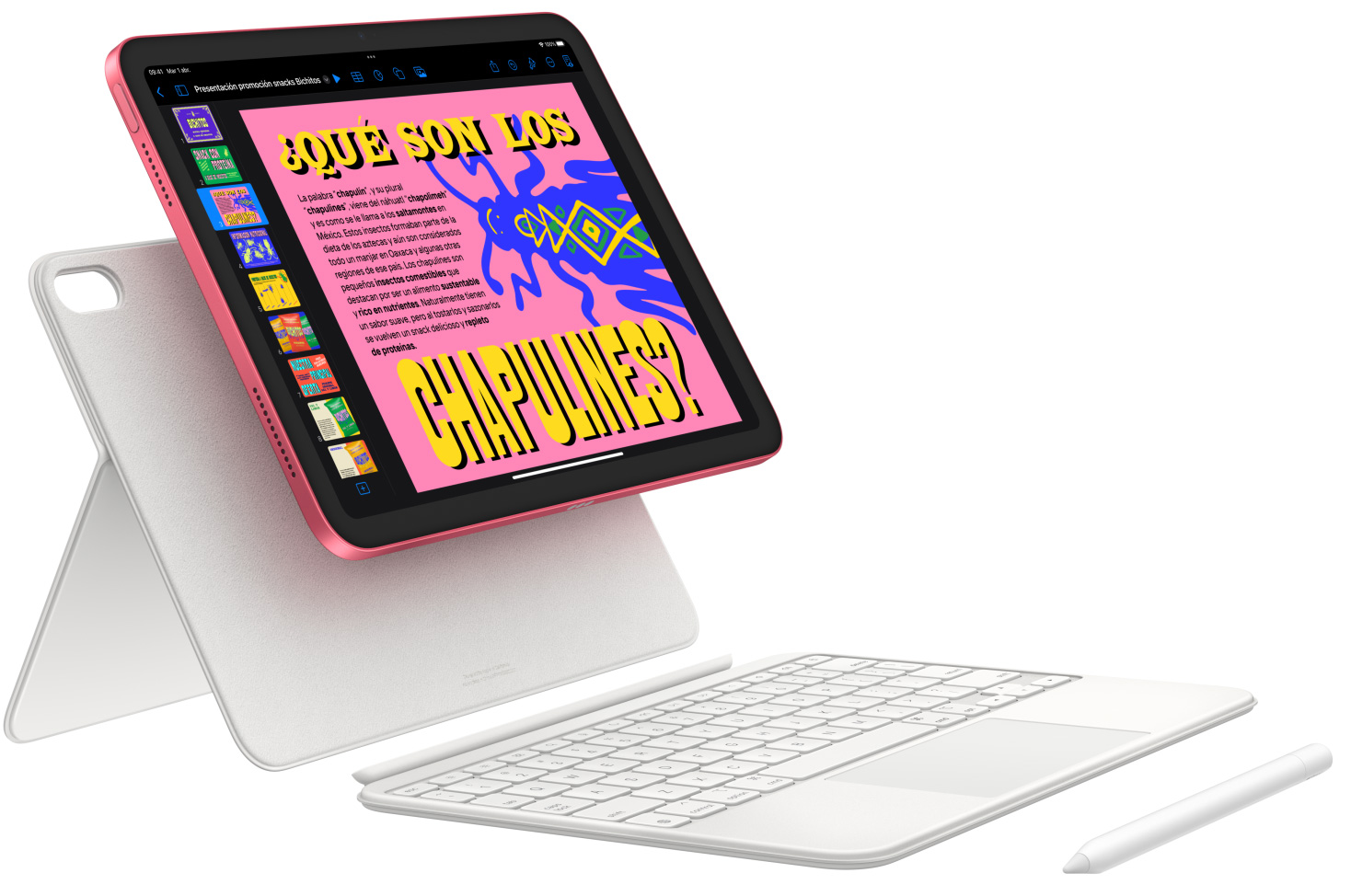 Edita una hoja de cálculo, termina una presentación de Keynote y toma apuntes sobresalientes. Con el Magic Keyboard Folio puedes escribir con total comodidad y usar el trackpad para las tareas que necesitan más precisión.2 Es como tener un as bajo la manga.