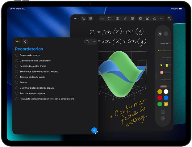 iPadOS 26 estrena un espectacular diseño con Liquid Glass y trae mejoras revolucionarias que llevan la productividad en el iPad Pro a un nuevo nivel. El nuevo e intuitivo sistema de ventanas te ofrece más poder y flexibilidad. Usa apps profesionales, disfruta los mejores juegos y domina proyectos creativos de cualquier tamaño con una interfaz táctil tan intuitiva que te va a encantar desde el primer toque.