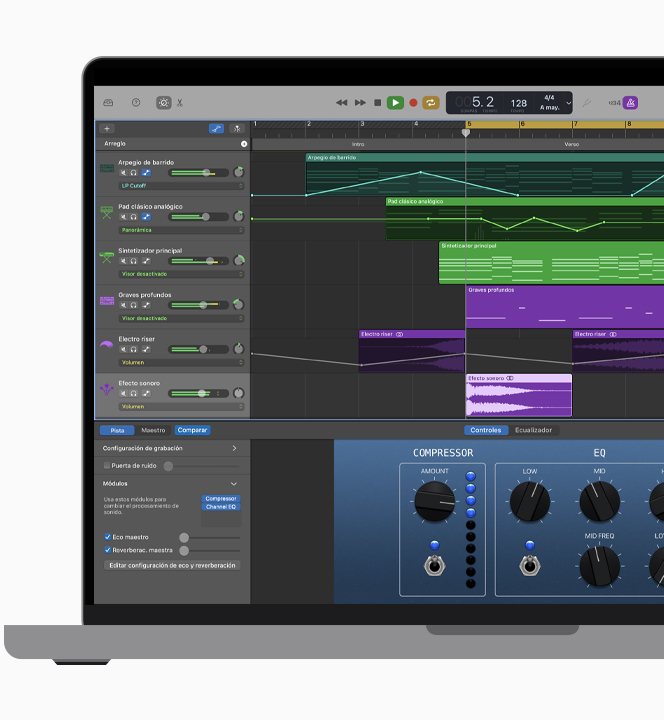 Crea tu próximo gran hit con una increíble colección de herramientas profesionales, instrumentos, efectos y samples, e incluso mezcla música en Dolby Atmos.