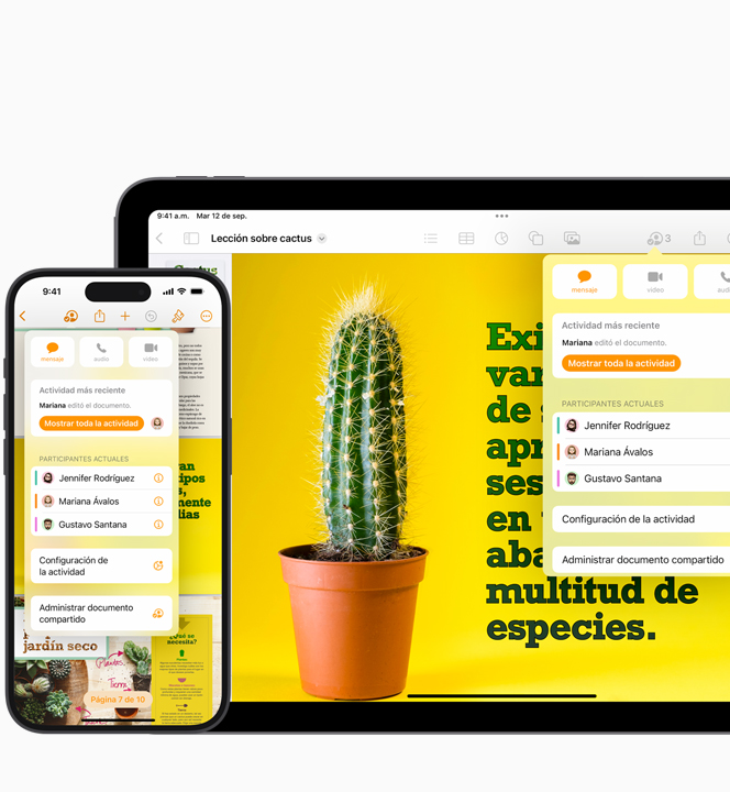 Empieza una tarea en un dispositivo y termínala en otro. Incluso puedes usarlos al mismo tiempo con Cámara de Continuidad, Control Universal y más.