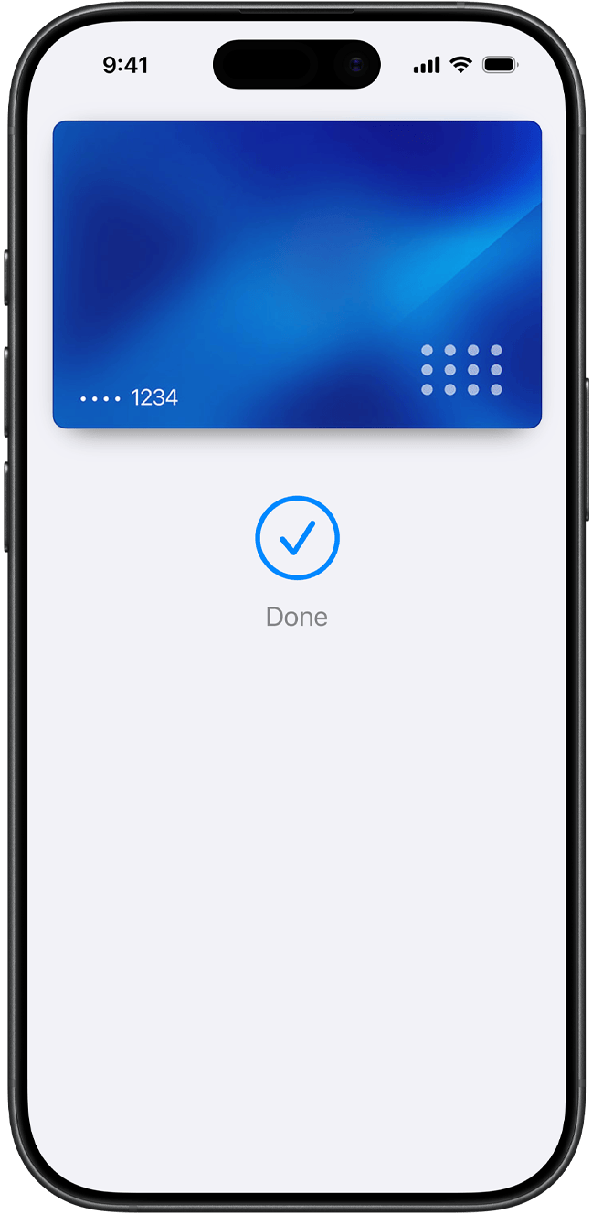 Kreditní nebo debetní kartu přidáš jednoduše tak, že otevřeš aplikaci Peněženka, klepneš na plus a přiložíš vyhovující kartu k zadní straně iPhonu.1 Nebo můžeš kartu přidat ručně – otevři aplikaci Peněženka, klepni na plus a postupuj podle pokynů na obrazovce. Zadané údaje budeš muset ověřit u své banky nebo vydavatele karty. Pokud máš spárované Apple Watch, rovnou dostaneš možnost přidat kartu i do hodinek. A když si pořídíš nový iPhone, svoje karty do něj přeneseš jedním snadným krokem.