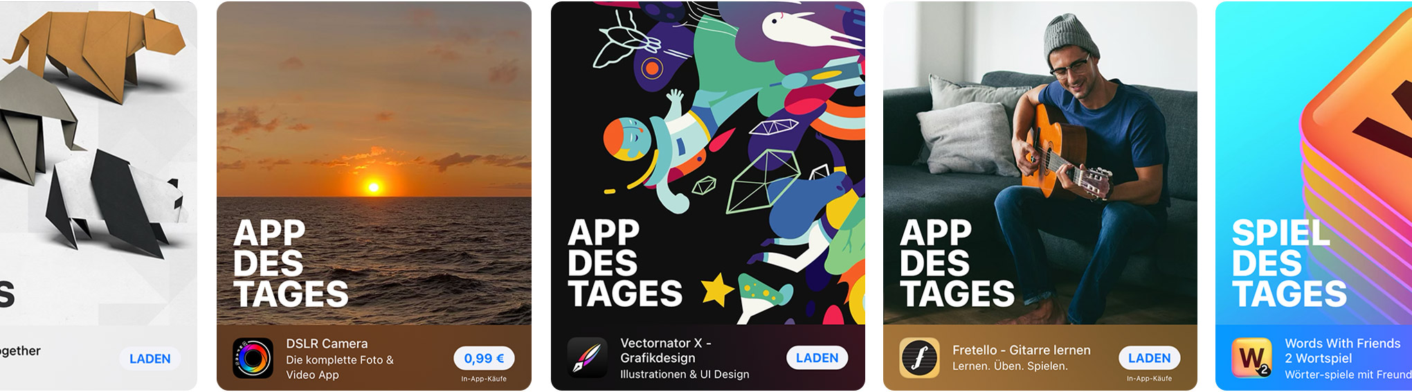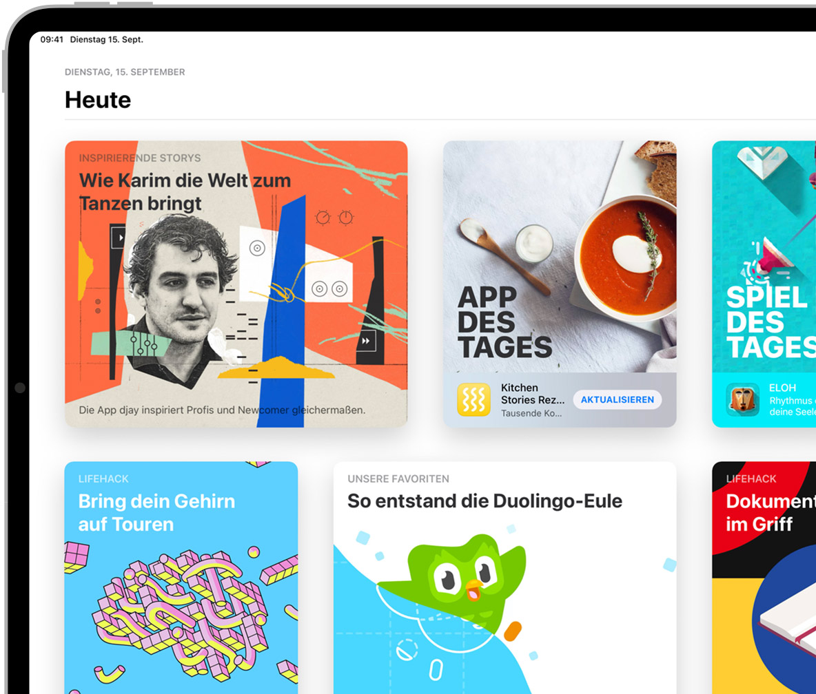 Der App Store ist seit über zehn Jahren ein sicherer und vertrauens­würdiger Ort, um Apps zu ent­decken und herunter­zuladen. Aber der App Store ist mehr als nur ein Store – er ist ein innovativer Ort, der dir fan­tas­tische Erleb­nisse nach Hause bringt. Ein wich­tiger Teil dabei ist es, sicher­zustellen, dass die von uns angebotenen Apps den höchsten Stan­dards für Daten­schutz, Sicher­heit und Content entsprechen. Alles ist so ent­wi­ckelt, damit du deine nächste Lieblings­app ganz entspannt finden kannst.