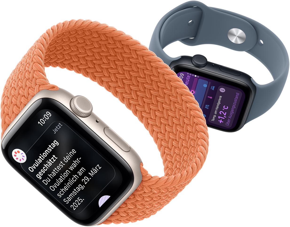 Für wert­volle Insights zu deiner Gesund­heit musst du einfach nur deine Apple Watch SE 3 tragen. Der neue Sensor für Temperatur­erkennung am Hand­gelenk ermög­licht umfang­reichere Infor­ma­tionen zu deiner Gesund­heit in der Vitalzeichen App und rück­blickende Ovulations­schätzungen in der Zyklus­protokoll App. Außer­dem erhältst du deinen täglichen Schlafindex und Mit­teilungen bei Schlafapnoe. Es war noch nie so ein­fach, alles Wichtige im Blick zu behalten.