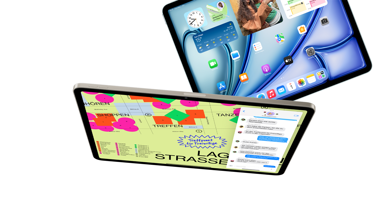 Ganz gleich, ob du dich für das 11" oder das 13" iPad Air entscheidest – beide haben ein fantastisches, hochauflösendes Liquid Retina Display für ein brillantes, reaktionsschnelles und farbgenaues Seherlebnis. So wirkt alles, was du damit machst, unglaublich lebendig.