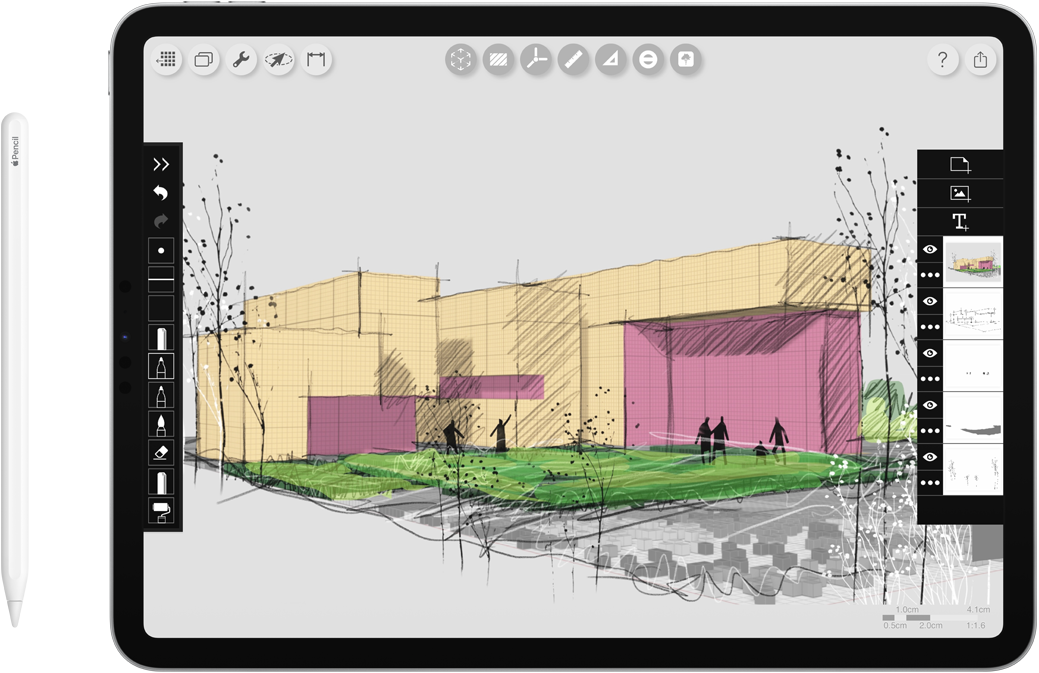 iPad Pro and Apple Pencil. Magos chooses iPad and its ecosystem of apps as the all-in-one powerhouse solution to teach and mentor architecture students. iPad with the Voxel Max app makes it simple to create and render 3D models, while the Morpholio Trace app and Apple Pencil provide endless tools to sketch and design details.