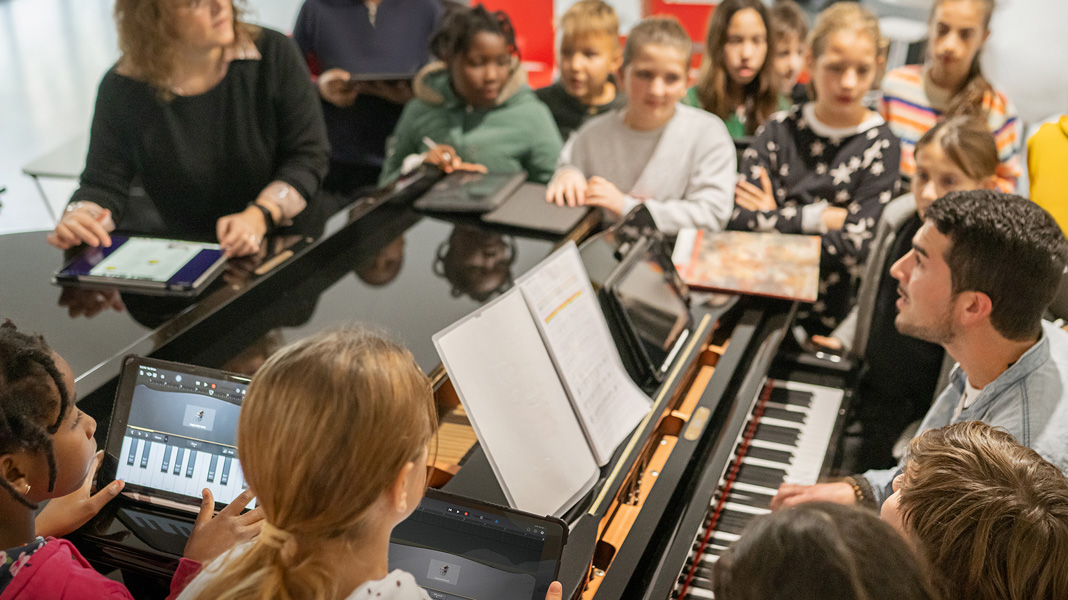 With teachers bringing these fresh ways of learning into the classroom, students are thriving. In music lessons, students gather around a piano to play and write their own music using Apple Pencil with Pages. Others use GarageBand to create and record their own sounds in concert with classmates playing instruments. In coding class, students use CoSpaces Edu on iPad to make 3D creations and Swift Playground to animate in AR and VR environments.