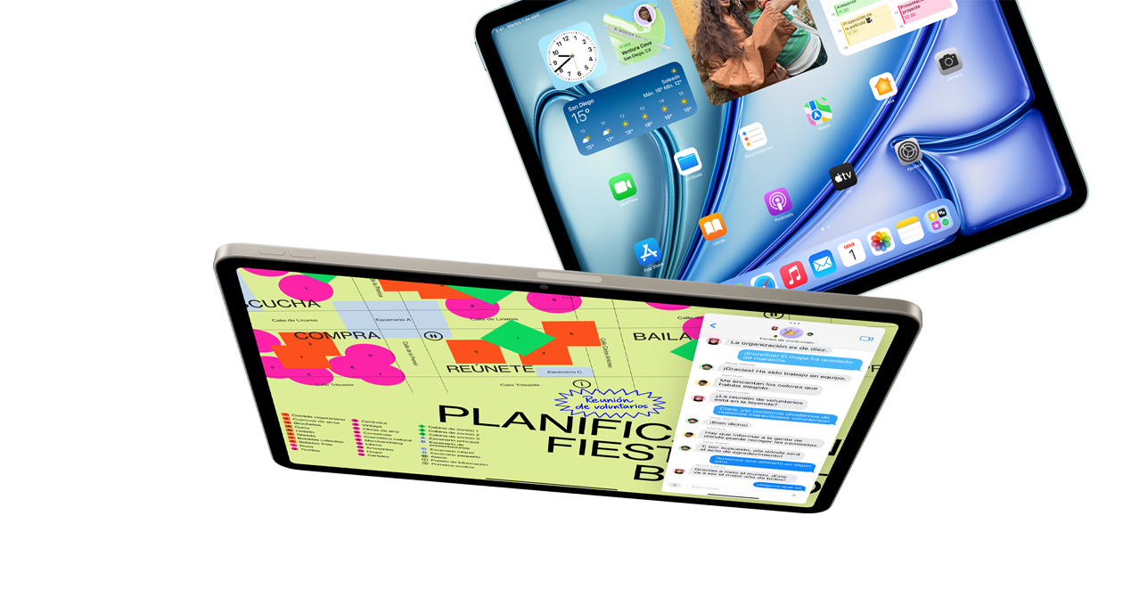 El iPad Air viene en dos tamaños de 11 o 13 pulgadas. Elijas el que elijas, vas a ver el mundo de otro color gracias a la espectacular pantalla Liquid Retina con respuesta inmediata y una imagen en alta resolución brillante a todas luces.