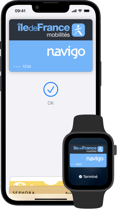 Vous pouvez utiliser votre Navigo sur un iPhone Xs (ou modèle ultérieur) mis à jour vers iOS 17.5, et sur une Apple Watch Series 6 (ou modèle ultérieur) dotée de watchOS 10.5.