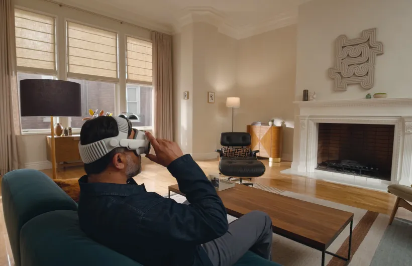 Transform any room into your own personal theater — with more pixels than a 4K TV for each eye. Experience mind‑blowing immersion with Spatial Audio and expand movies, shows, and games on a giant screen. Whether you’re on the couch or a long flight, enjoy stunning content anywhere.