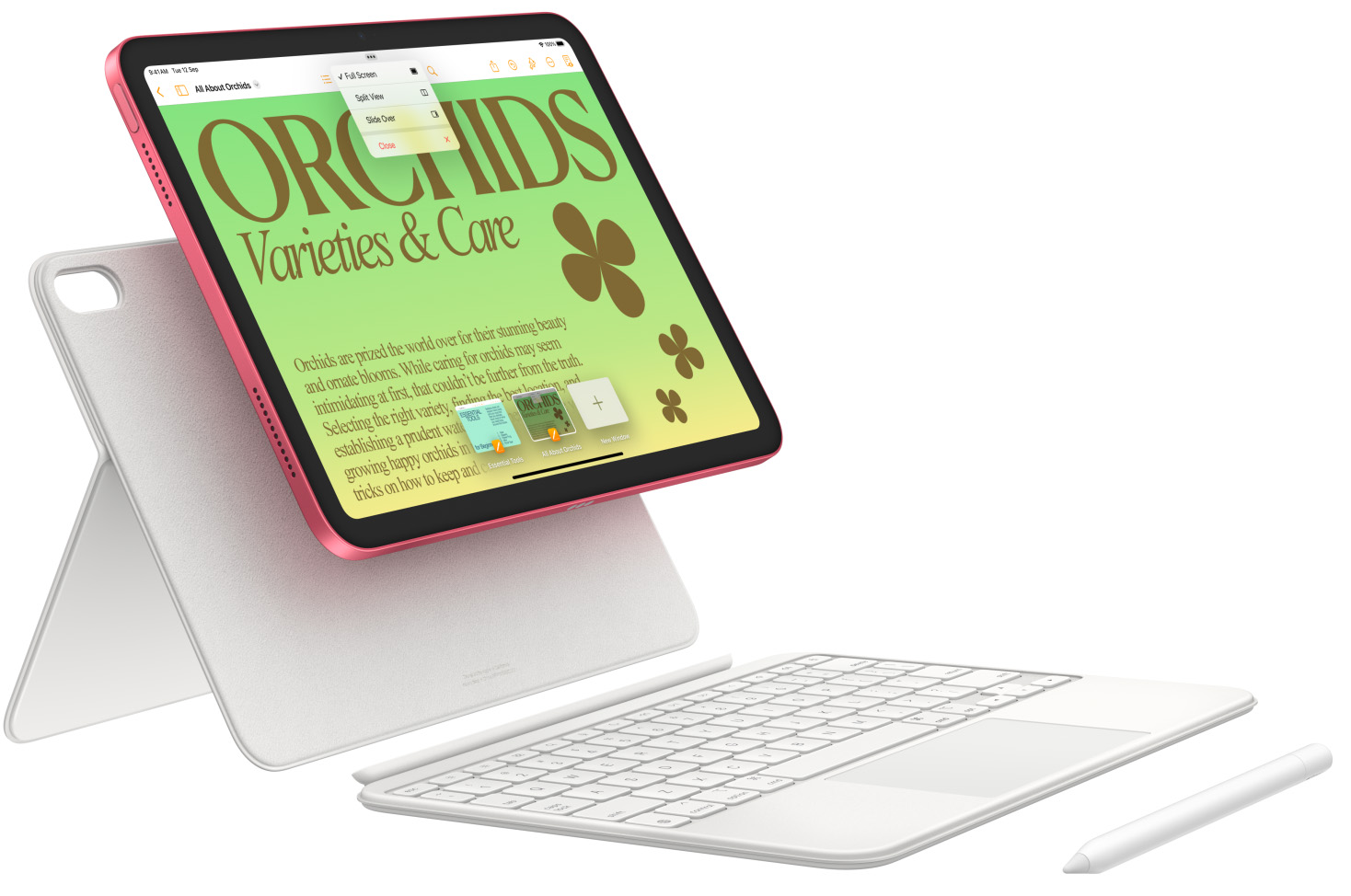 Draw, paint, and write with Apple Pencil. Type comfortably, use a trackpad, and enjoy content with the versatile two-piece design of the Magic Keyboard Folio.2 You can use familiar keyboard shortcuts or the click-anywhere trackpad. And get an incredible typing experience.