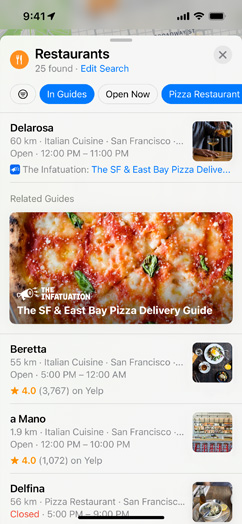 • Curated Guides are lists of places created by trusted partners to help you find great places to eat, shop, meet friends or just explore. Maps offers more than 1,000 curated Guides in cities around the world. In iOS 15, tap Explore Guides in Maps to see Guides recommended by Maps editors.