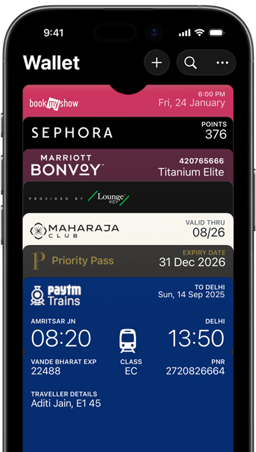 The Wallet app lives right on your iPhone. It’s where you securely keep your boarding passes, event tickets and more — all in one place. And it all works with iPhone or Apple Watch, so you can take less with you but always bring more.