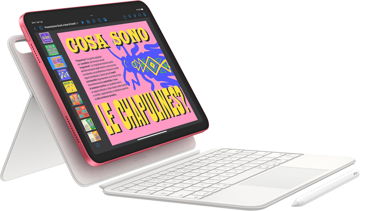 Modifica un foglio di calcolo, ritocca una presentazione in Keynote e prendi appunti al volo. La Magic Keyboard Folio è comodissima per scrivere e ha un trackpad ideale per lavorare di precisione.2