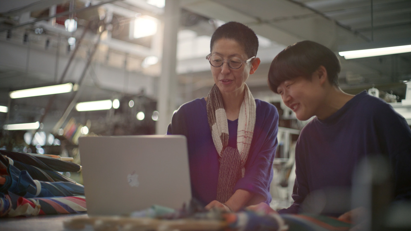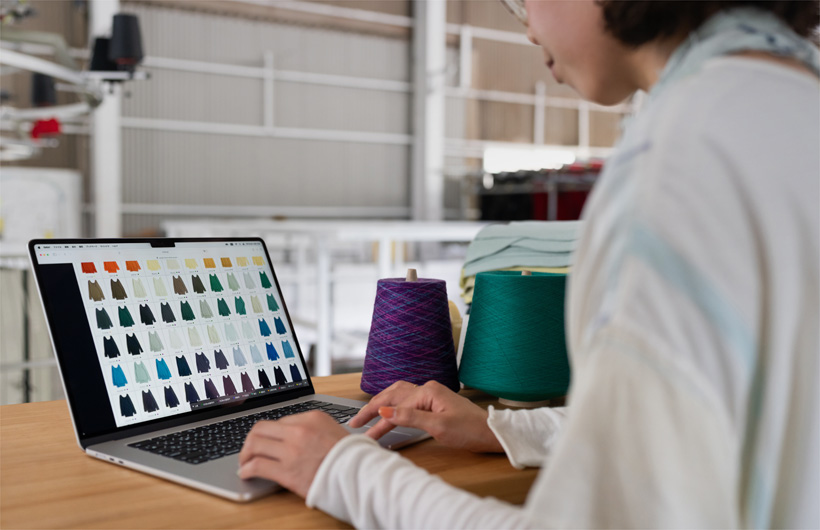 成長を続け、100人近くになったtamaki niimeのチームは、MacとiPadを活用して生産・在庫管理から販売・出荷までをスムーズに回し、リアルタイムにマーケティングを発信しています。テクノロジーに苦手意識を持っていた玉木氏の心を最初に捉えたのは、Macの洗練されたデザインと直感的なインターフェイスでした。Macの使いやすさは、会社の成長に伴い増えていく新しいスタッフたちが仕事を覚え、慣れやすいことにもつながっています。さらにMacを活用してビジネスプロセスをよりシンプルにすることができ、今では製織から物流まで、あらゆる業務を社内で管理できるようになっています。