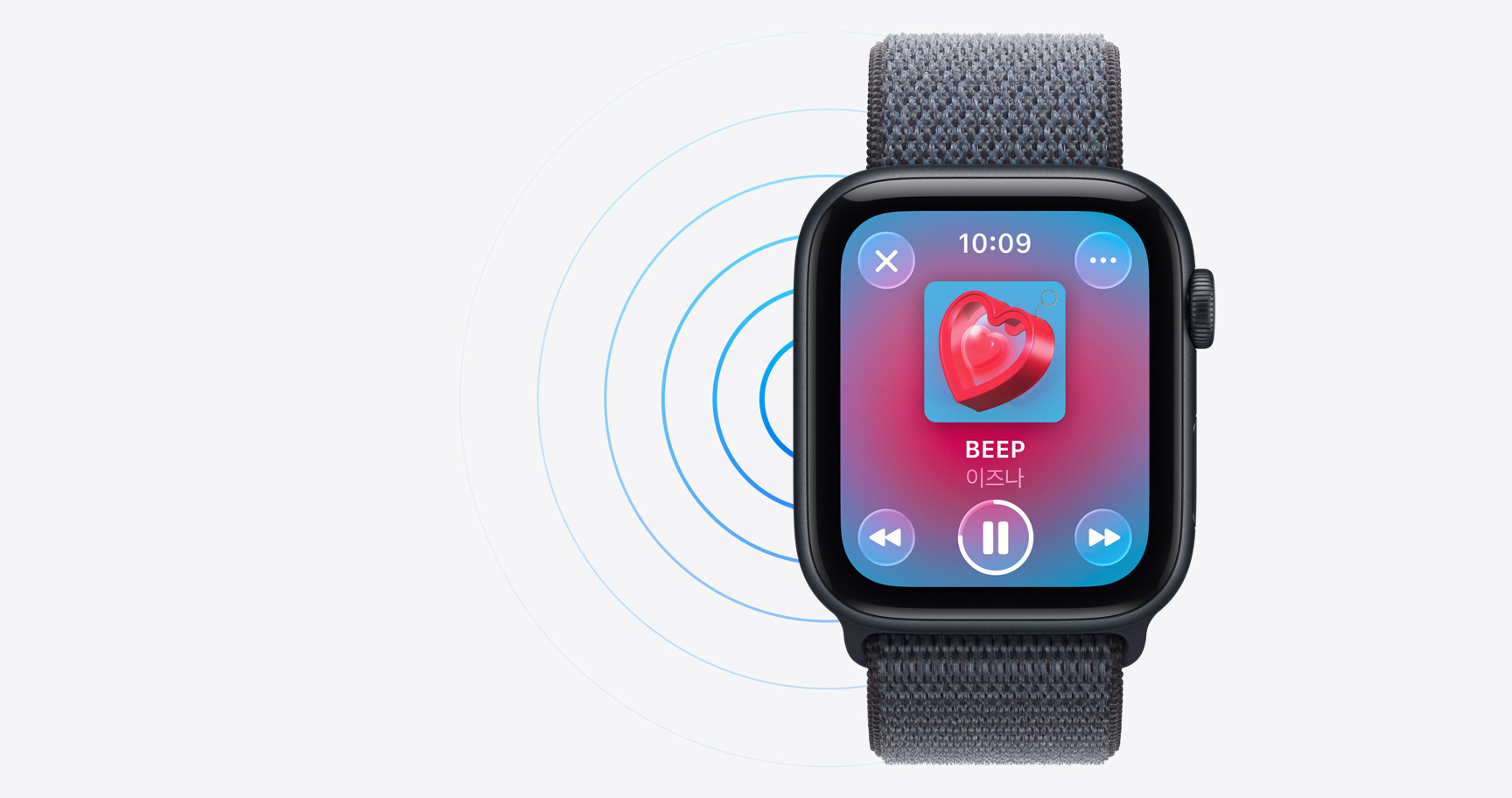 SE 3는 AirPods과 매끄럽게 연결되기 때문에 양손을 자유롭게 쓰면서 음악, 오디오북 또는 팟캐스트를 들을 수 있습니다.6 AirPods이 곁에 없는 경우에도 이제 시계 스피커를 통해 미디어를 재생할 수 있죠.