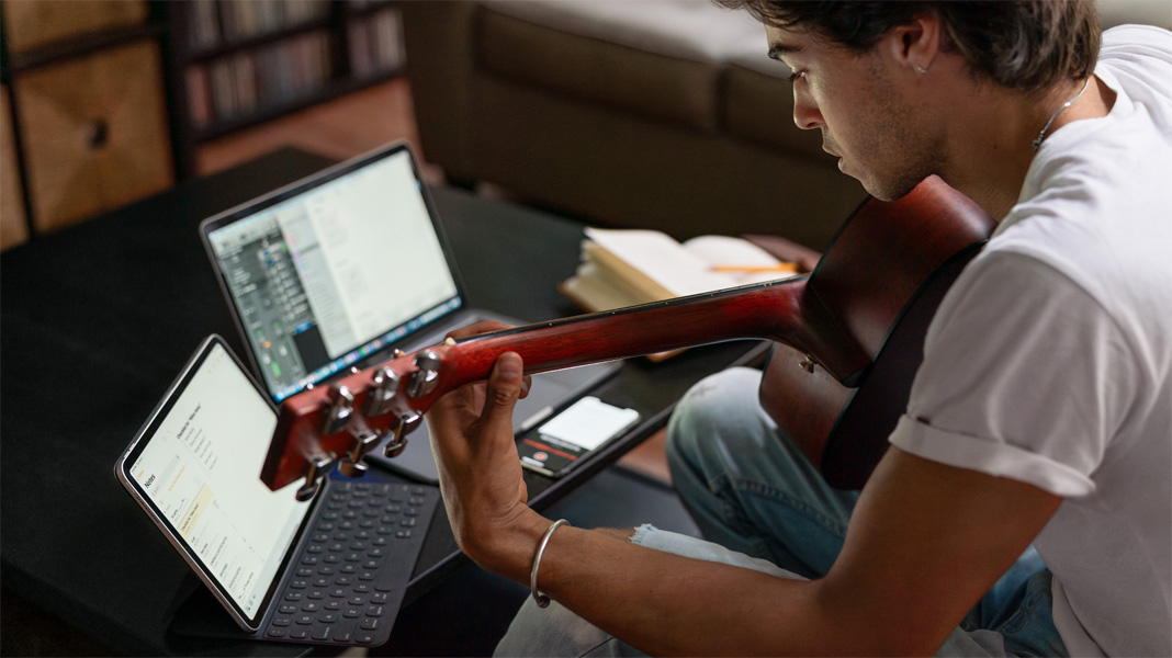 Max는 예기치 않은 순간에도 악상이 언제든 떠오를 수 있기 때문에 싱어송라이터는 항상 준비가 되어 있어야 한다고 말합니다. 그는 iPhone의 ‘음성 메모’를 이용해 순간 떠오른 곡 아이디어를 기록한 다음, Mac에서 다양한 방식으로 다듬으며 음악에 생명을 불어넣습니다.