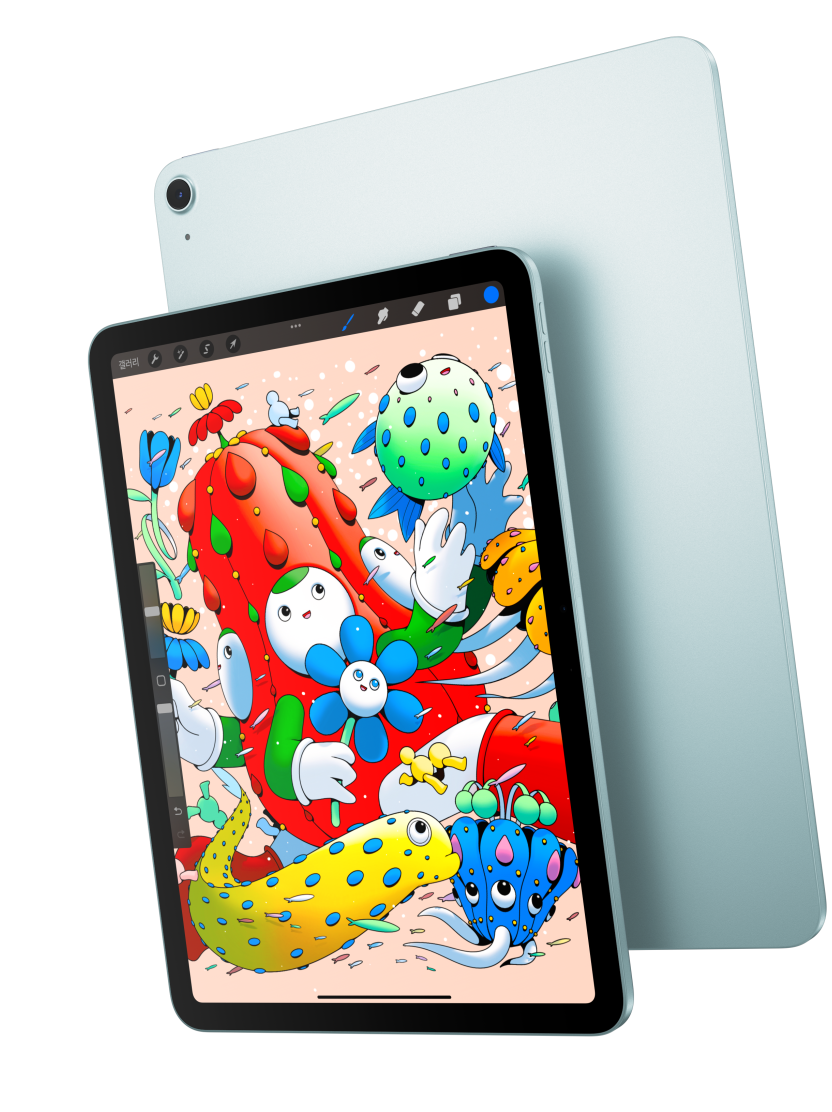 iPad Air를 11 모델 또는 13 모델 중에서 선택할 수 있습니다. 어느 쪽을 택하든 아름다운 고해상도 Liquid Retina 디스플레이가 당신이 즐겨 하는 모든 것에 생생함을 더해주죠. 두 디스플레이 모두 선명한 색감, 뛰어난 반응성 그리고 정확한 색상 처리로 몰입감 넘치는 시각 경험을 선사합니다.
