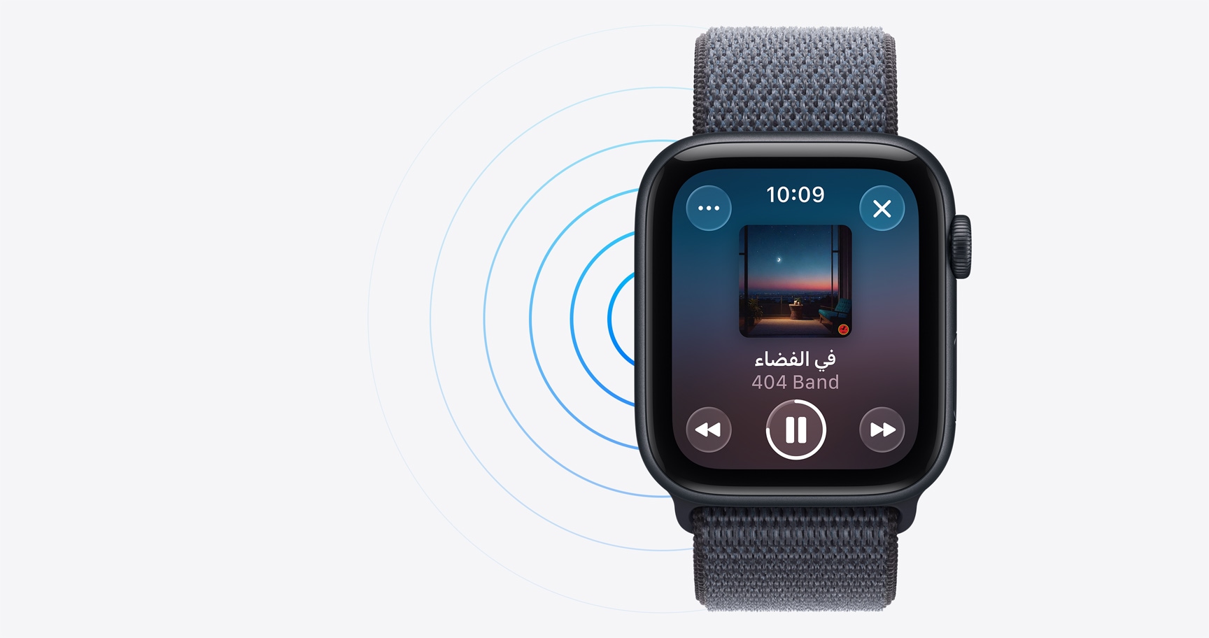 تتصل SE 3 بسماعات AirPods بكل سلاسة لتستمع إلى الموسيقى أو حلقات البودكاست من دون استخدام يديك.6 وإن لم تكن AirPods قريبة منك، بإمكانك الآن تشغيل المحتوى عبر مكبر الصوت في الساعة.