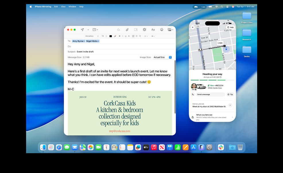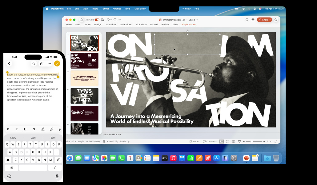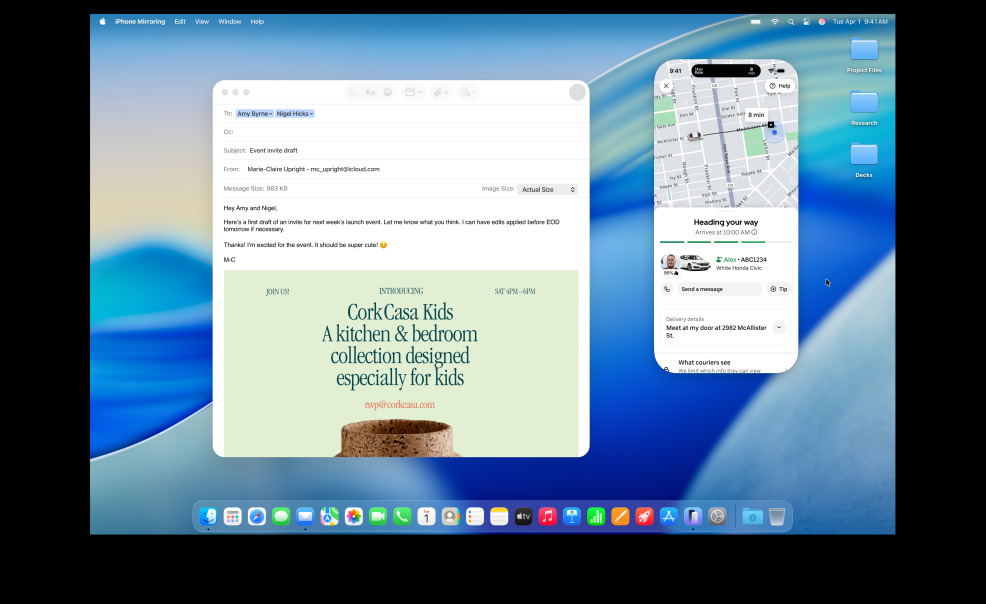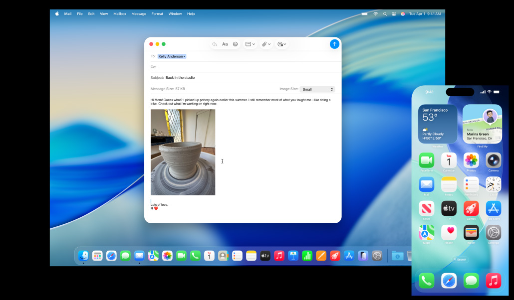 Mac, iPhone, iPad, and Apple Watch are amazing on their own. And they’re even more amazing when used together. Thanks to Continuity, your devices work together seamlessly — unlocking a world of powerful features. Start an email on your Mac and finish it on your iPad. Snap a photo on your iPhone and see it appear on your Mac. Or make a call without reaching for your iPhone.1 That’s the magic of Continuity.