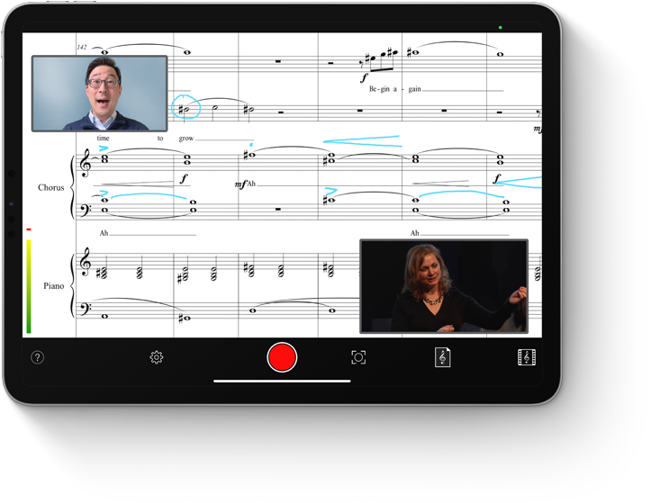 iPad Pro. El Dr. Kim desarrolla apps para iPadOS que acercan a las personas y facilitan la colaboración. Su app Virtual-Chorister registra grabaciones individuales e interpretaciones de músicos de todo el mundo para crear grupos musicales virtuales.