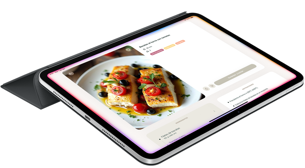 Haz más desordenando menos. Pon temporizadores, convierte medidas y llama a tu familia a la mesa con el Interfón del HomePod. Todo sin ensuciar tu iPad.