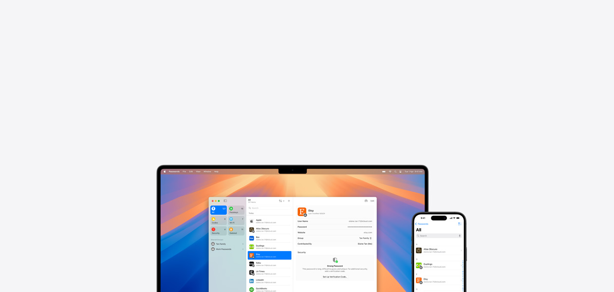 manage credentials across devices with iCloud and alerts you to
