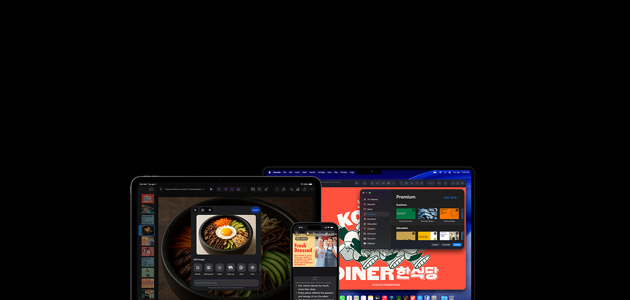 Build memorable presentations and collaborate in real time with intuitive tools and effects. As an Apple Creator Studio subscriber, you get premium content and powerful intelligence.