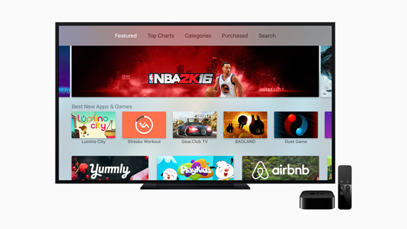 The latest Apple TV just launched last fall, giving developers unprecedented access to a modern platform like iOS but for the living room. With over 6,000 apps already available for Apple TV, the future of television is apps. Users can enjoy amazing experiences on the biggest screen in their home, work out with Zova or Daily Burn; plan their next trip with Airbnb or TripAdvisor; play SketchParty TV or NBA 2K16 with friends and family; buy their favorite designer brands on Gilt; learn to cook with Kitchen Stories Cookbook; catch up on news with ABC News; or watch their favorite shows, movies and sports with HBO NOW or Sling TV. Developers have only just begun tapping into the potential of tvOS and initial feedback has been tremendous.