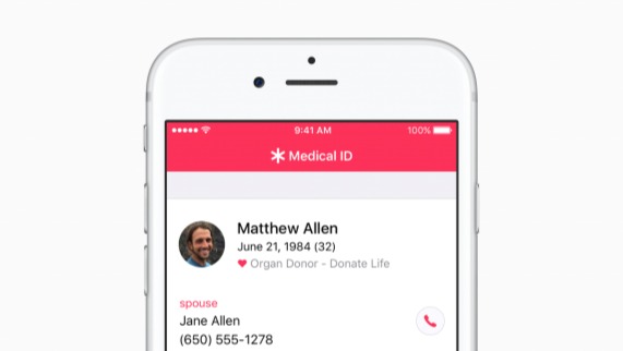 The Health app on iPhone provides a complete view of your health and fitness data all in one place. The app includes Medical ID, which makes critical health information available in case of emergency to first responders and is accessible from the iPhone lock screen. Medical ID can display categories like medical conditions, allergies, medications, blood type and emergency contacts. And with iOS 10, Medical ID offers the ability to register as an organ, eye and tissue donor with Donate Life America.