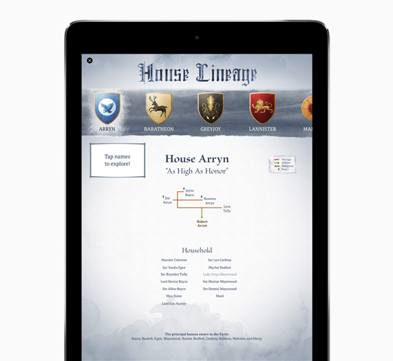 “We’re now entering a new period in the history of publishing,” said author George R.R. Martin. “The digital book gives readers the ability to experience all this rich secondary material that had not been possible before. These enhanced editions available only on iBooks include sigils and family trees and glossaries. Anything that confuses you, anything you want to know more about, it’s right there at your fingertips. It’s an amazing next step in the world of books.”