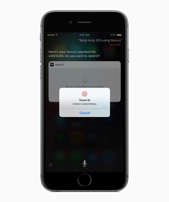 Monzo, which aims to build a bank of the future for people who hate banks, will let you ask Siri to send payments to fellow Monzo users, authenticating them with the touch of a finger with Touch ID.