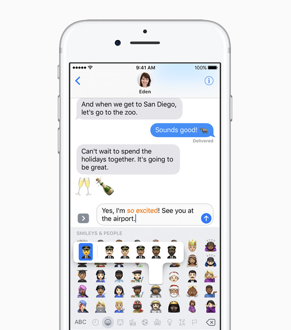 iOS 10 was a massive release for Messages, introducing predictions that present the perfect emoji as you type, a Tap to Replace feature that lets you “emojify” any message and emoji that appear three times larger within a message when sent on their own. Now with iOS 10.2, almost every emoji has been beautifully redesigned to reveal even more detail, so using emoji is more fun than ever.