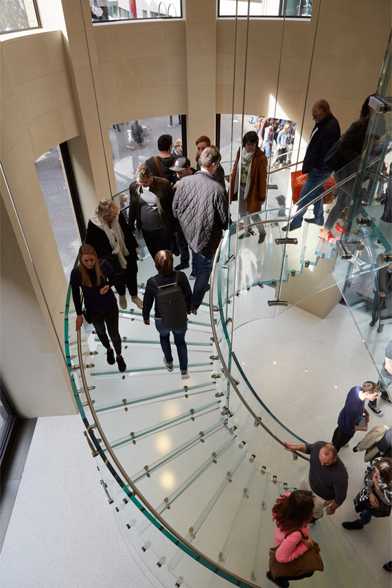 Each store complements the local architecture, from the restored facade in Schildergasse to the 90-by-30-foot glass entryway of Apple Nanjing. For the first time in each city, customers explored The Forum, a place where the local community can gather and learn. All three stores also feature The Boardroom, a space for local entrepreneurs, developers and business customers to get hands-on advice and training.