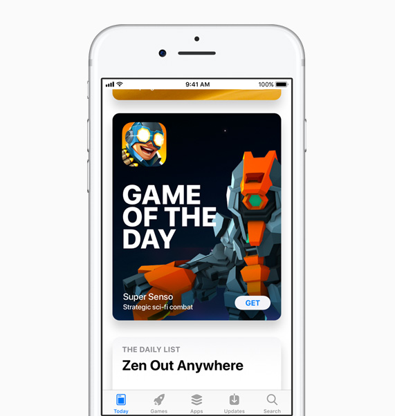 The beautifully redesigned App Store is packed with original stories, updated daily in a new Today tab. It also features new Games and Apps tabs.