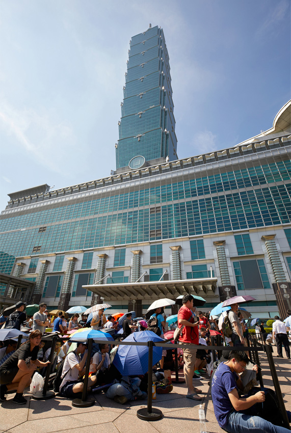 Customers queued starting Friday night at Taipei 101 for the store opening.