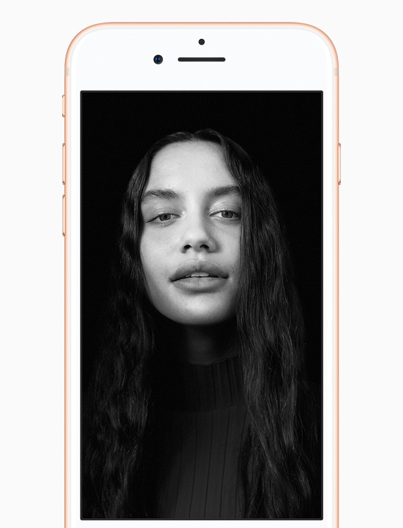 iPhone 8 Plus features dual 12-megapixel cameras and introduces Portrait mode with Portrait Lighting, bringing dramatic studio lighting effects to iPhone, allowing customers to capture stunning portraits with a shallow depth-of-field effect in five different lighting styles.