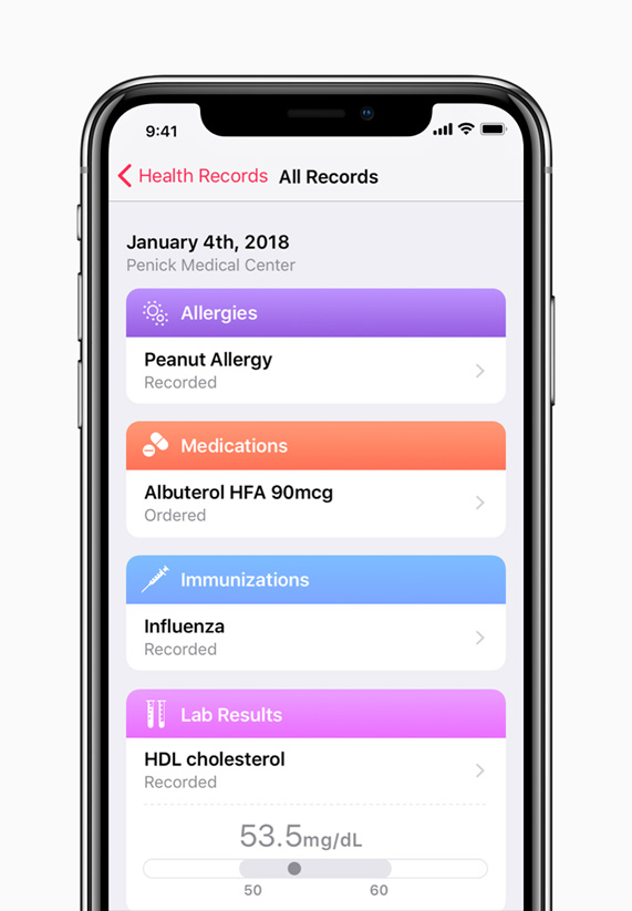 Now, consumers will have medical information from various institutions organized into one view covering allergies, conditions, immunizations, lab results, medications, procedures and vitals, and will receive notifications when their data is updated. Health Records data is encrypted and protected with the user’s iPhone passcode.