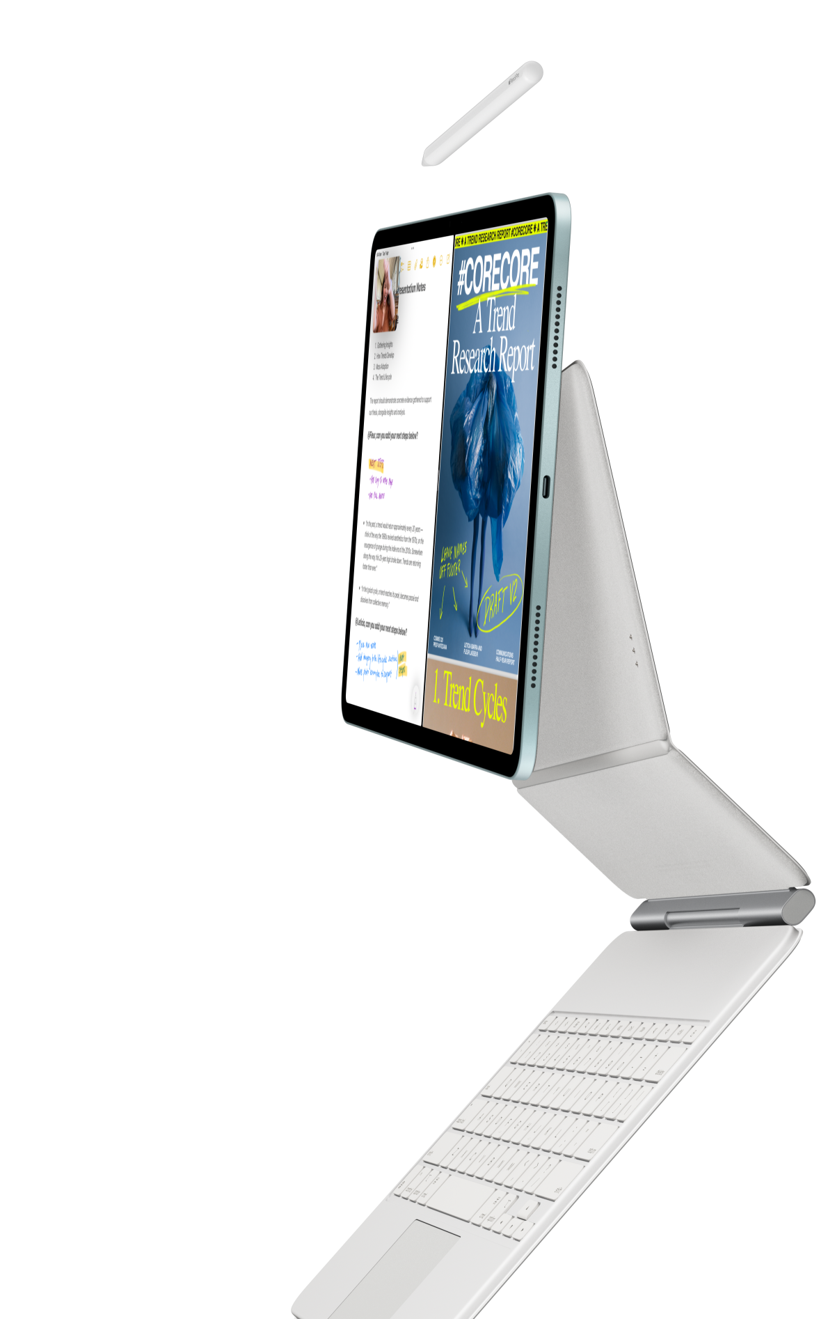 Magic Keyboard is the perfect companion for iPad Air. It delivers an amazing typing experience and a trackpad for precision tasks in a sleek, portable design. The keyboard includes a 14‑key function row, a USB-C connector for pass‑through charging, and front and back protection for your iPad Air. The floating cantilevered design smoothly adjusts to multiple viewing angles, and a large glass trackpad expands how you can work with iPadOS.3