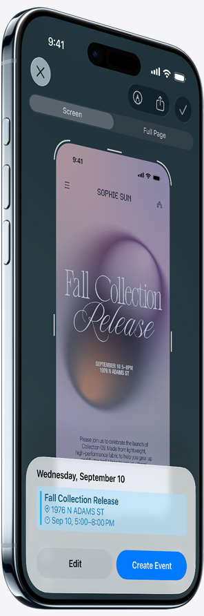 يتكيف مظهر الوقت بشكل ديناميكي مع خلفية شاشتك وإشعاراتك ليبقى العنصر الأساسي في الصورة ظاهراً بوضوح. وعندما تحرّك iPhone، تنبض صورتك بالحياة مع تأثير جديد ثلاثي الأبعاد.15
