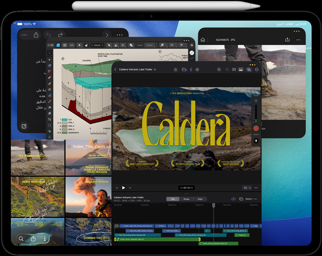 صوّر وعدّل وشارك على جهاز واحد فقط بفضل نظام كاميرات Pro وماسح ضوئي بتكنولوجيا لايدار وميكروفونات بجودة الاستوديوهات الاحترافية وأربعة مكبرات صوت. التقط فيديوهات ProRes بوضوح 4K وسجّل حلقة بودكاست واختَر الميكروفون المناسب لكل تطبيق باستخدام منتقي الإدخال.