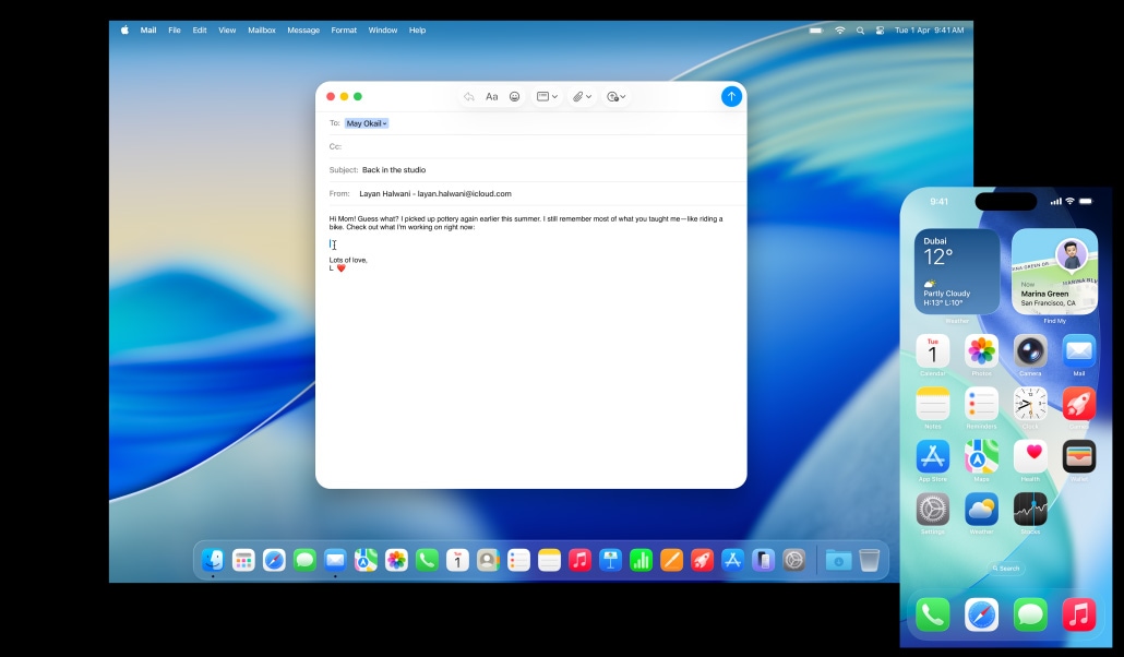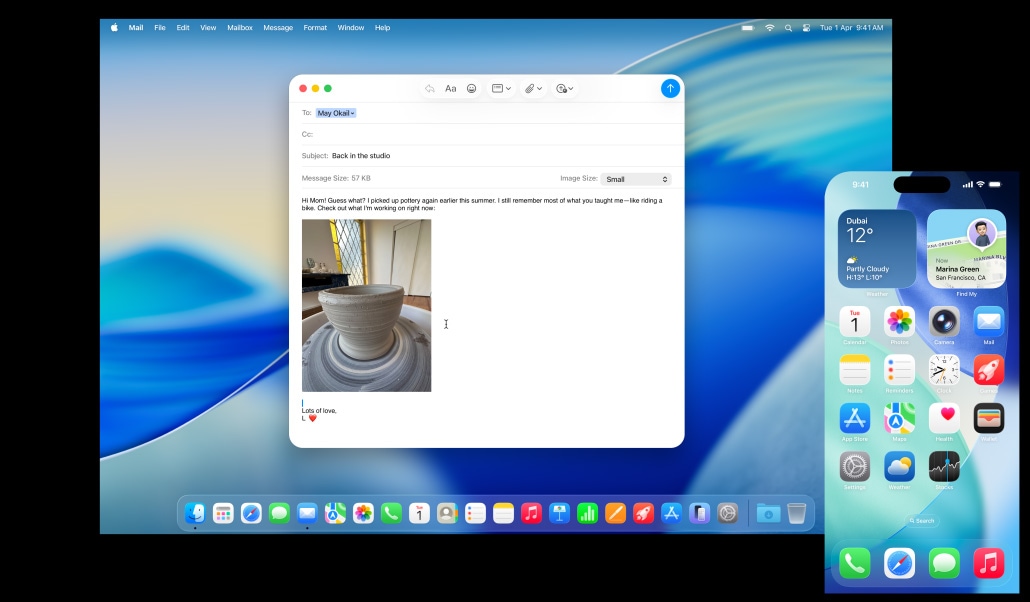 Mac, iPhone, iPad, and Apple Watch are amazing on their own. And they’re even more amazing when used together. Thanks to Continuity, your devices work together seamlessly — unlocking a world of powerful features. Start an email on your Mac and finish it on your iPad. Snap a photo on your iPhone and see it appear on your Mac. Or make a call without reaching for your iPhone.1 That’s the magic of Continuity.