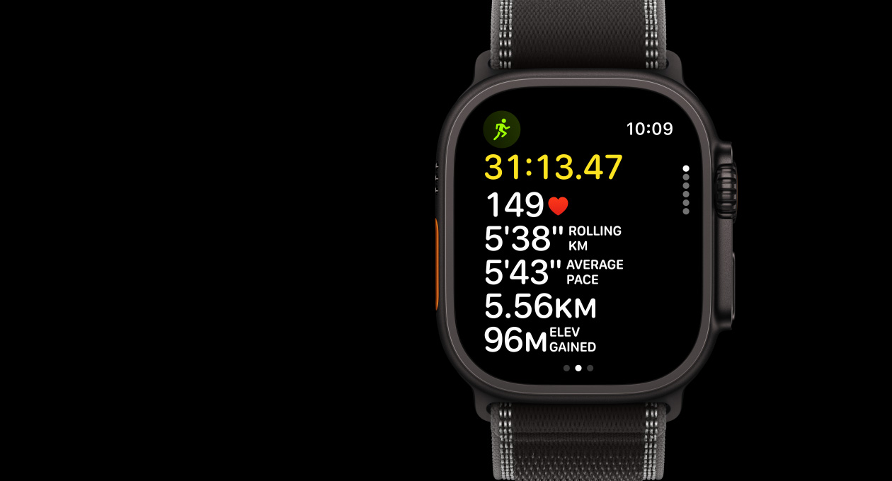Ultra 3 has a Hiking workout that lets you track your pace, distance, elevation gain and calories burned. See how high you’ve climbed in real time and get your total elevation gain when you’re finished. Sky’s the limit.